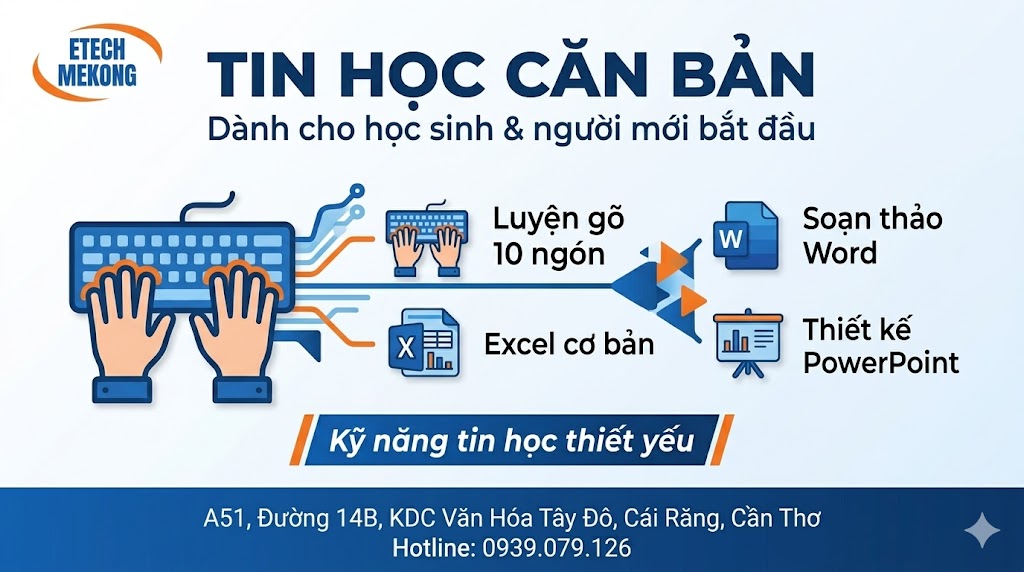 Tại ETECH MEKONG, chúng tôi cam kết cung cấp môi trường học tập hiện đại và chất lượng, giúp học viên phát triển kỹ năng và chuẩn bị sẵn sàng cho tương lai.