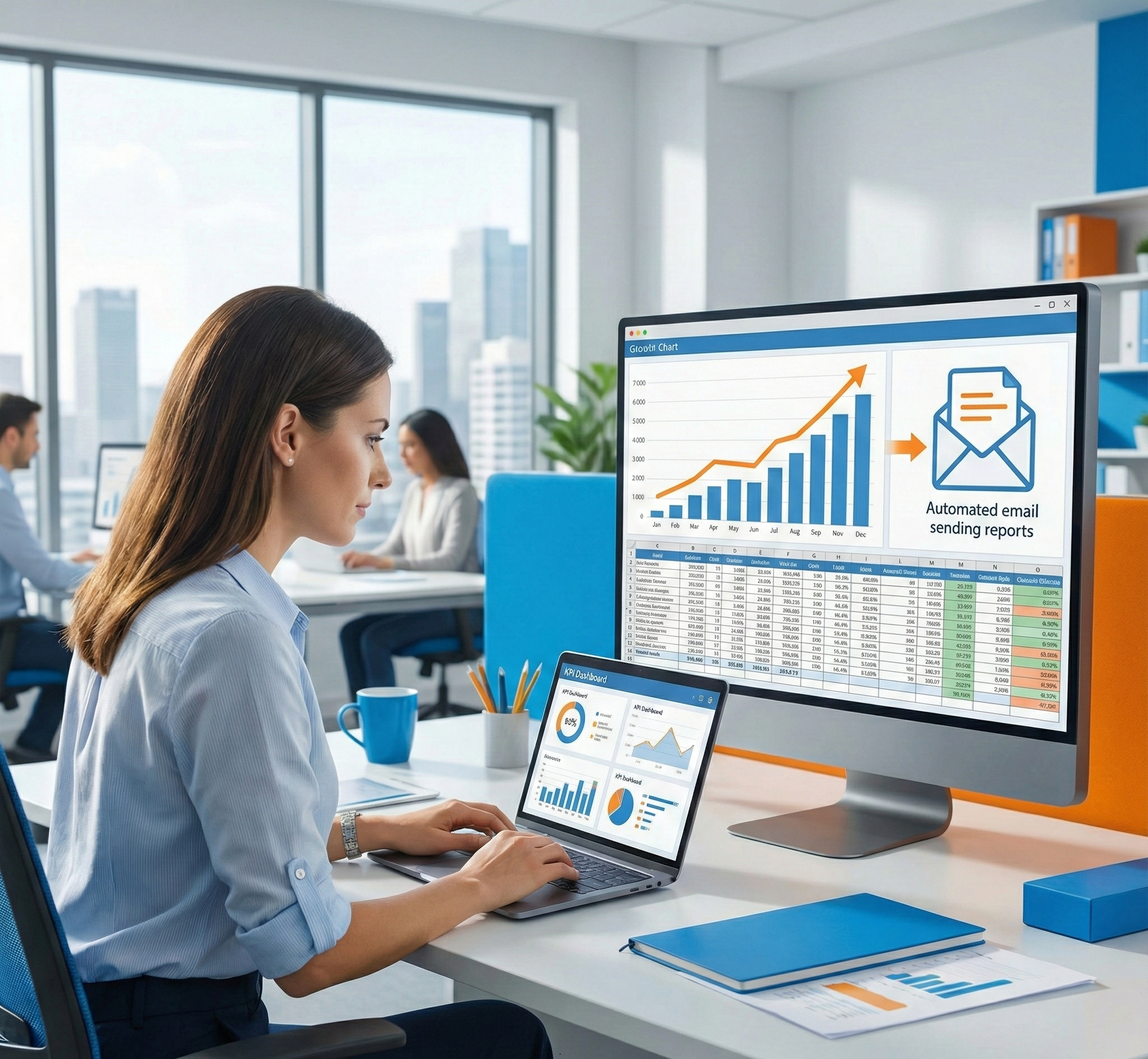 Tự động tạo báo cáo tuần/tháng và gửi email.