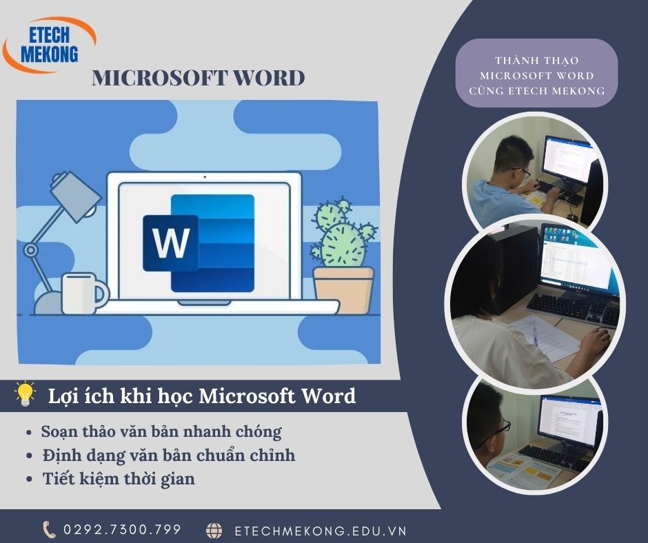 Ngày nay, kỹ năng tin học văn phòng không chỉ là yêu cầu cần thiết trong công việc mà còn trở thành yếu tố quan trọng giúp nâng cao hiệu suất học tập và làm việc. Hiểu được nhu cầu đó, ETECH MEKONG mang đến các khóa học Tin học văn phòng tại Cần Thơ dành cho học sinh, sinh viên và người đi làm, giúp trang bị kiến thức từ cơ bản đến nâng cao về Microsoft Word, Excel và PowerPoint.