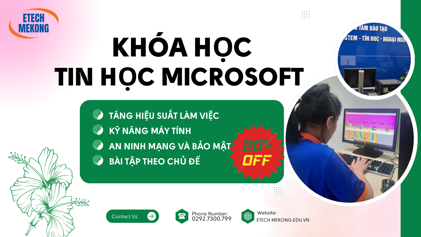 Khóa Học Tin Học Microsoft Word là một trong những công cụ quan trọng nhất trong bộ Microsoft Office, được sử dụng rộng rãi trong học tập, làm việc và đời sống hàng ngày. Khóa học Microsoft Word tại ETECH MEKONG – Cần Thơ sẽ giúp học viên nắm vững từ cơ bản đến nâng cao các kỹ năng soạn thảo văn bản, tạo ra tài liệu chuyên nghiệp và tối ưu hóa hiệu suất công việc.